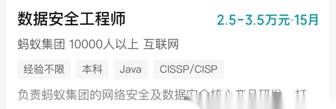工作内容:给数据分类分级、做脱敏处理、防泄露监控