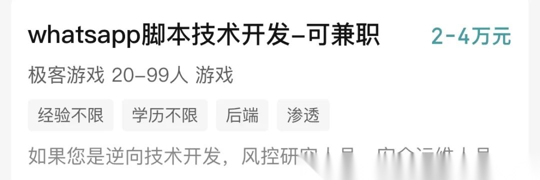 薪资参考:自由职业者单漏洞奖金 500-10 万,企业岗年薪 30 万起