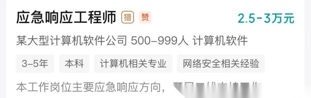 工作内容:攻击发生时秒级响应,溯源黑客、取证留痕、写复盘报告 难度指数:★★★★(需懂电子取证、溯源技术,能熬夜应急)