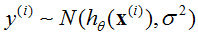 为误差(error),由许多原因引起,一般情况下服从正太分布(也有特殊情况,但是比较少见,引起误差的原因很多,每种原因相互独立,由中心极限可知,对于大多数问题,使用线性系统,尝试测量误差,误差一般服从正太分布,所以假设误差是正态分布是很好的假设)。所以: