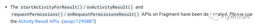 startActivityForResult()+onActivityResult()和requestPermissions()+onRequestPermissionsResult()被标记为弃用,而在Fragment 1.3.0-alpha05 这些标记弃用的方法内部已改为使用 ActivityResultRegistry 实现