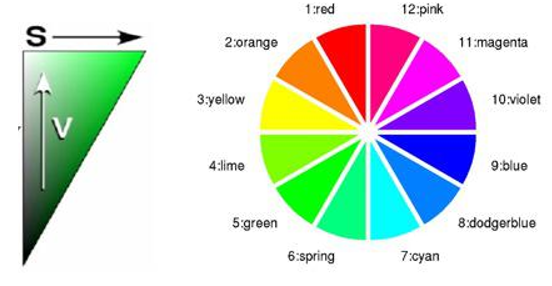 HSV:Hue(色调,颜色种类),Saturation(饱和度,色彩的纯度),Value(明度,色彩的明亮度)