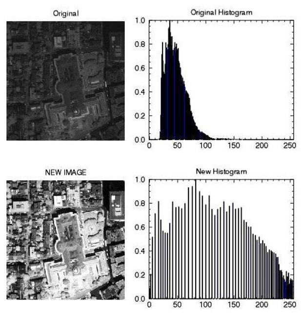 重新分配各个灰 度单位中的像素 点数量,使一定 灰度范围像素点 数量的值大致相 等。