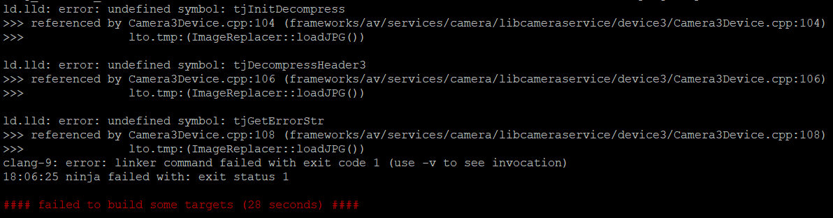 07-24 15:13:05.033 4488 4488 F linker : CANNOT LINK EXECUTABLE "/system/bin/cameraserver": cannot locate symbol "tjInitDecompress" referenced by "/system/lib/libcameraservice.so"...