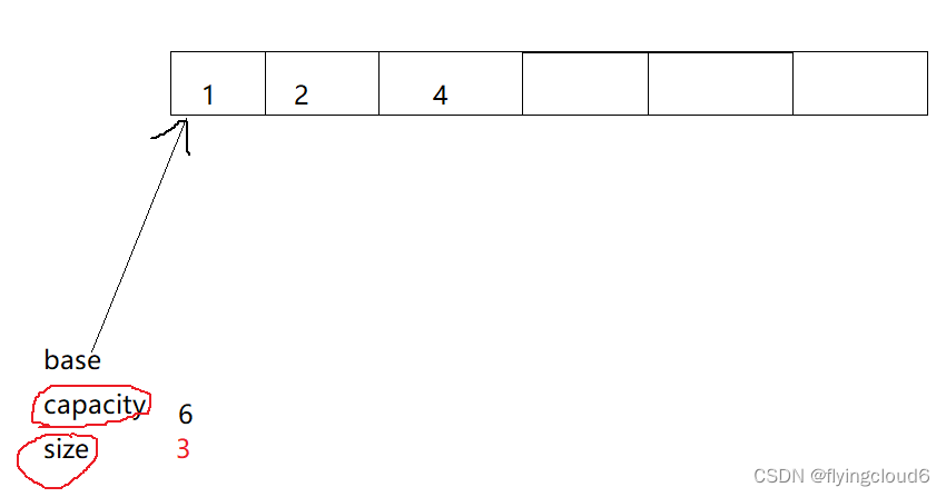 SeqList 中有一个指针base,这个指针是用来指向动态内存开辟的空间的,也就是指向数据的。