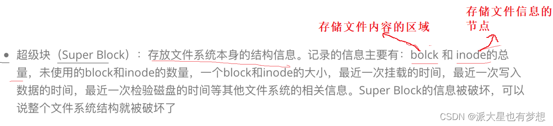- 存放文件属性 如 文件大小,所有者,最近修改时间等,存放文件到底存储在磁盘的Data blocks区域当中的哪些block当中。