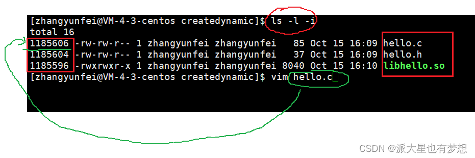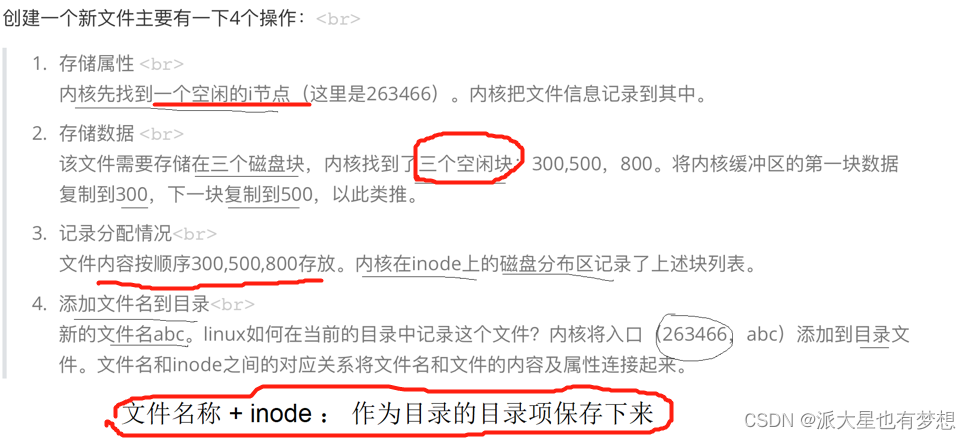 我们在执行vim hello.c想打开这个文件的时候就是通过这个文件名去找到他的inode节点号,从而去磁盘中的进行搜索关于这个文件的内容,把文件内容读回来展示给我们。
