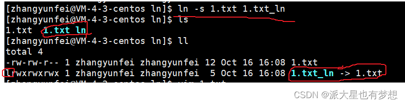 可以发现生成的软链接文件 1.txt_ln文件是指向 1.txt的