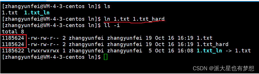 2、硬链接文件的前面并不算l开头的,他本质上就是一个普通文件