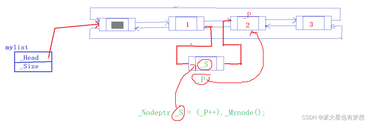 函数返回的是_P位置的迭代器,所以erase函数是删除当前位置的节点,