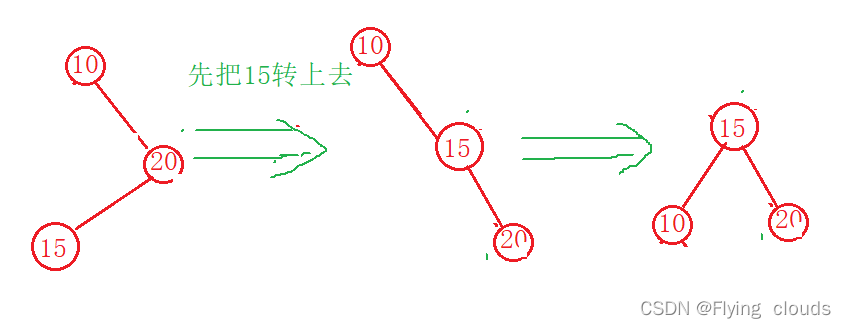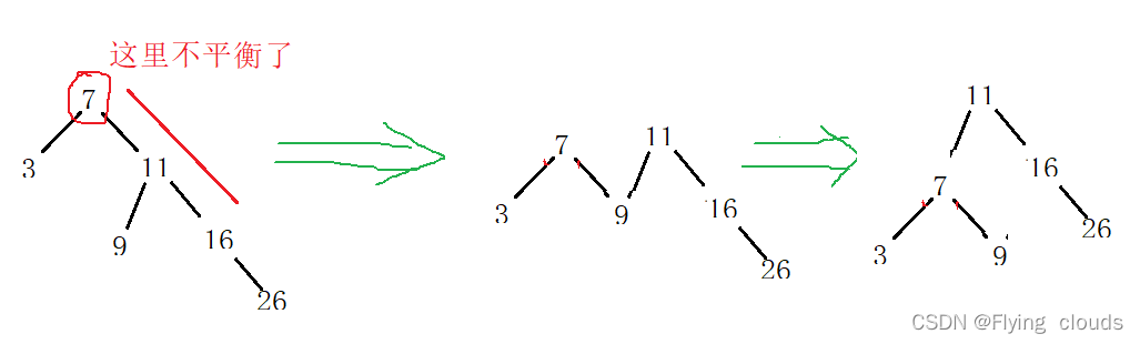 这时候需要先进行一次单旋转,旋转完之后,q的层数就减少了一层 ,相当于整个根节点的右树减少了一层,需要回溯