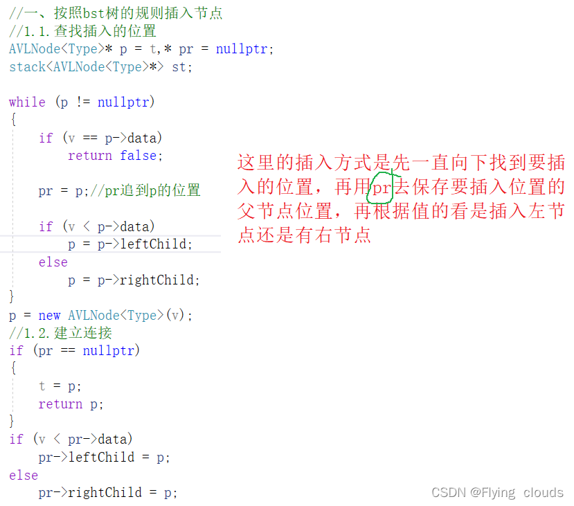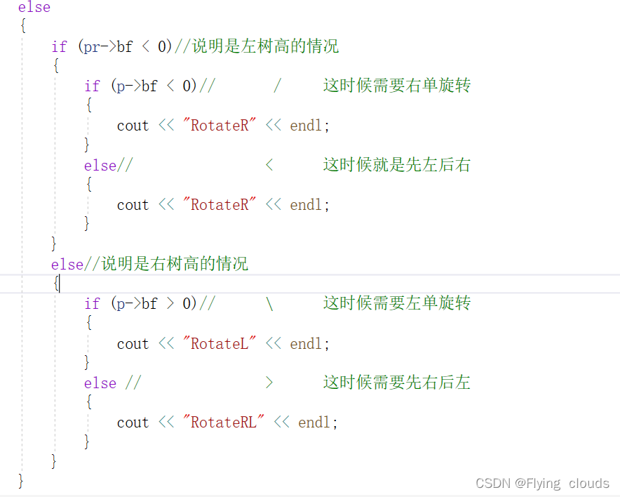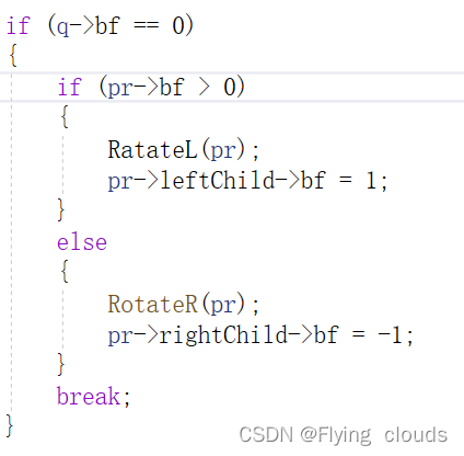 if (pr->bf == 0)//说明这时候,相当于是在pr较矮的那端插入了节点,这时候不需要再向上管了