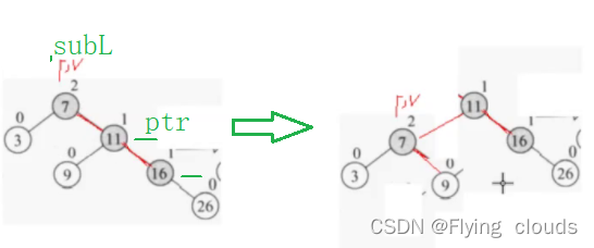 subL->rightChild = ptr->leftChild;//这个旋转要看图去实现