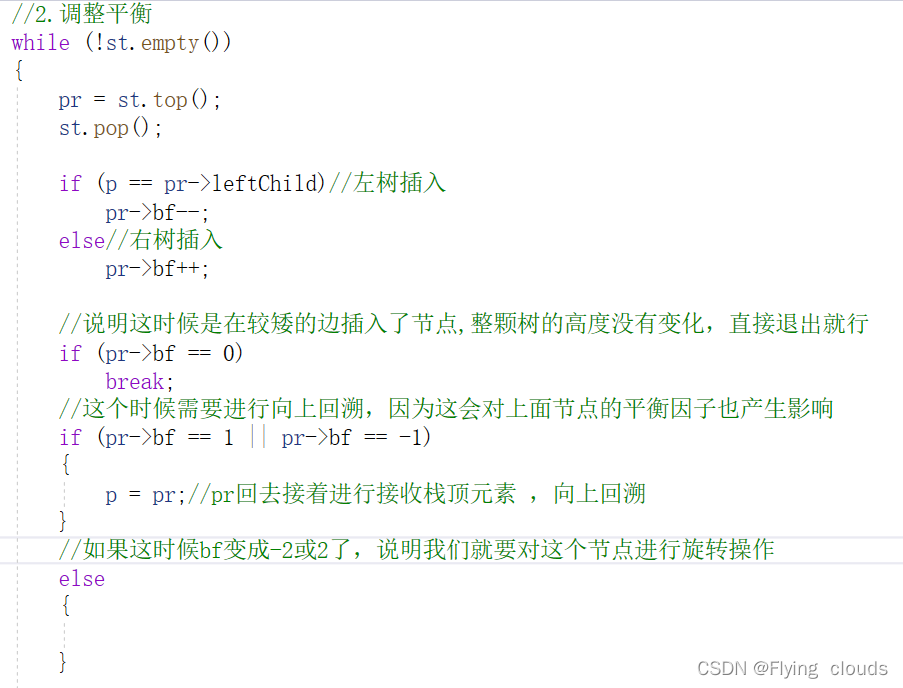 if (pr->bf == -1 || pr->bf == 1)//这时候就不确定上面的有没有出现不平衡的情况,要向上回溯