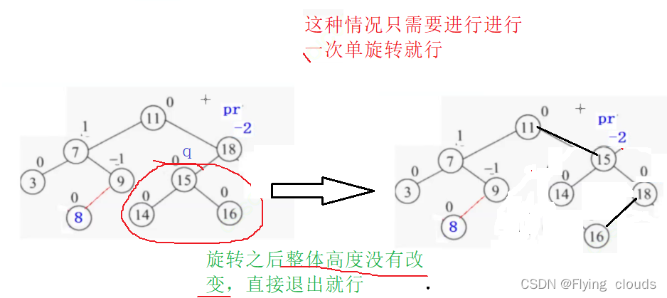 if (pr->bf == -1 || pr->bf == 1)//这时候树的高度是没有发生变化的