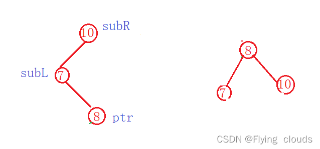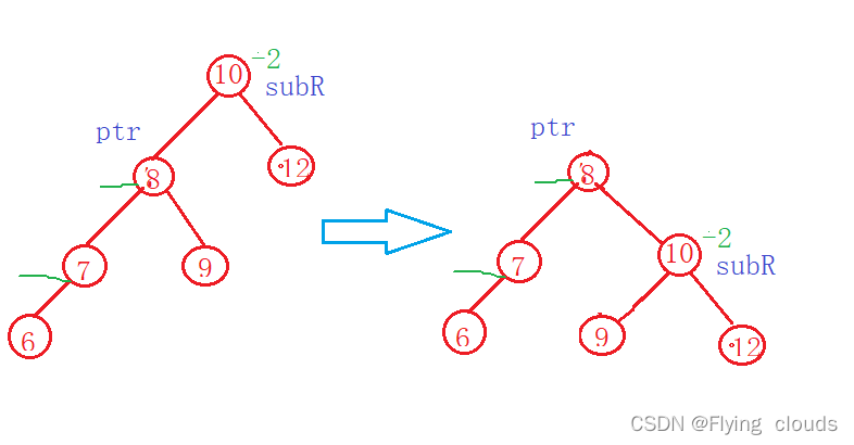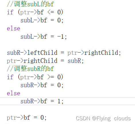 subR->leftChild = ptr->rightChild;//旋转要看着图去实现