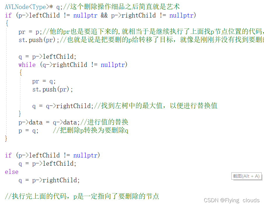 AVLNode<Type>* q;//这个删除操作细品之后简直就是艺术