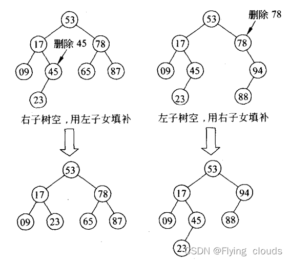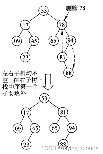 这时候就需要用左树中的最大值或者右数中的最小值来替换他