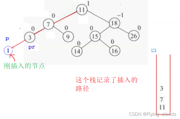 我们在调节平衡因子的时候是向上回溯着去调整的(从下到上),这时候可以借助一个栈结构,因为栈是先进后出的