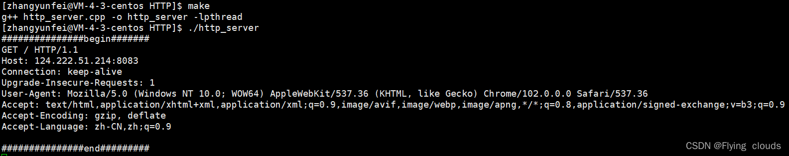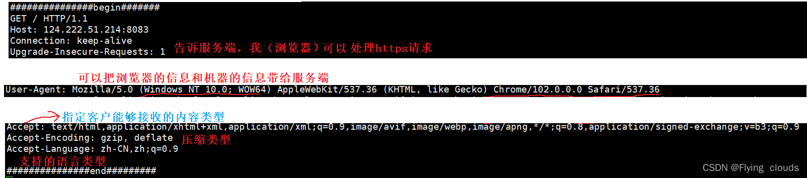 但是我们这时候能够发现,我们接收到了网页给我们发送的请求:下面就是请求的内容