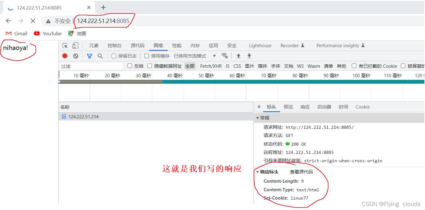 我们在浏览器中给server发送一个请求,观察收到的响应是什么样的