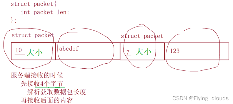 先接收4个字节,解析数据包的长度,再去接收后面的内容
