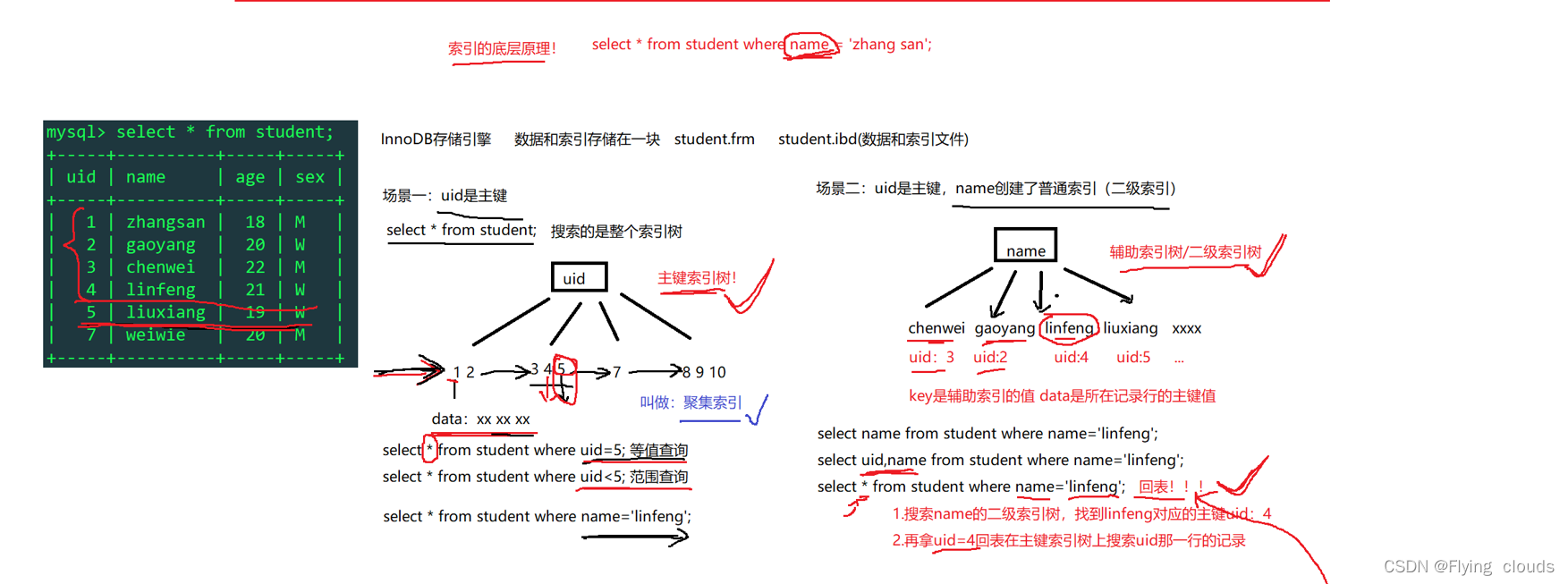 2.3、Innodb的主键索引和二级索引(辅助索引)