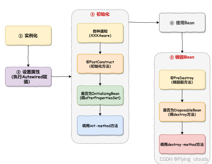 bean的生命周期即对象从诞生到销毁的整个过程,我们把这个过程叫做一个对象的生命周期