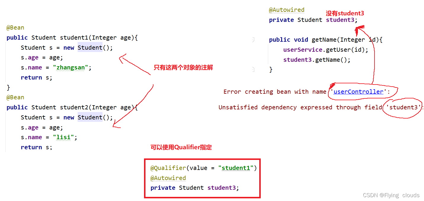 通过构造函数注入,只有一个构造函数,可以省略@Autowired注解,如果存在多个构造函数,需要在使用的那个构造函数上面加@Autowired注解,否则就会报如下错误