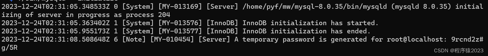 ./bin/mysqld --basedir=/home/pyf/mw/mysql-8.0.35/ --datadir=/home/pyf/mw/mysql-8.0.35/data/ --initialize