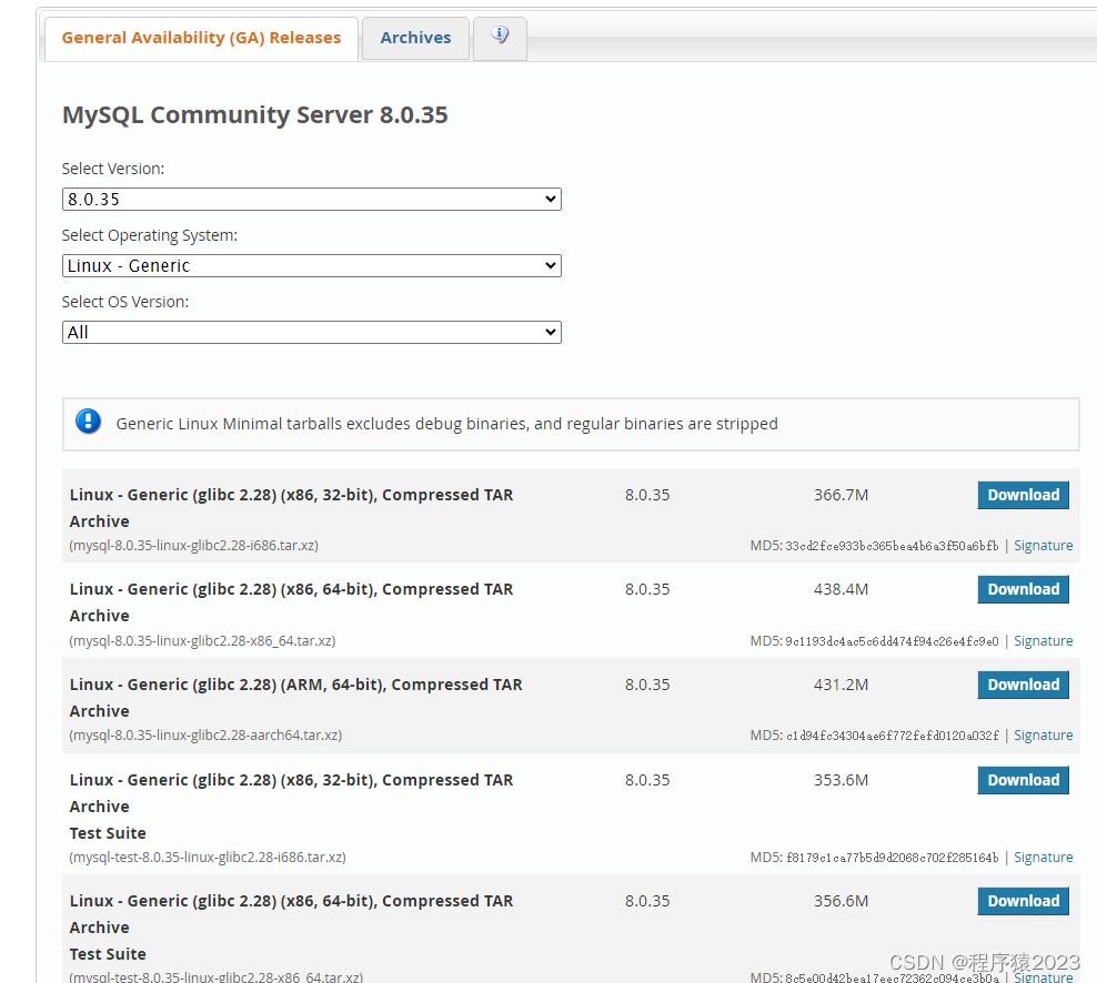这里选择下载8.0.35版本,操作系统选择Linux -Generic
