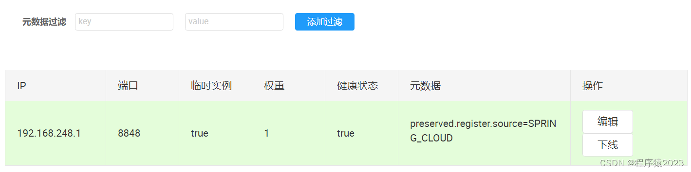 服务优雅上下线:Nacos 还提供服务实例的上下线操作,在服务详细页面,可以点击实例的 “上线” 或者 “下线” 按钮,被下线的实例,将不会包含在健康的实例列表里。