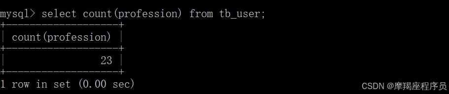 count(字段)时,如果这行的字段是null,那么就不会被统计进去;这先将某行的profession字段设置为NULL;