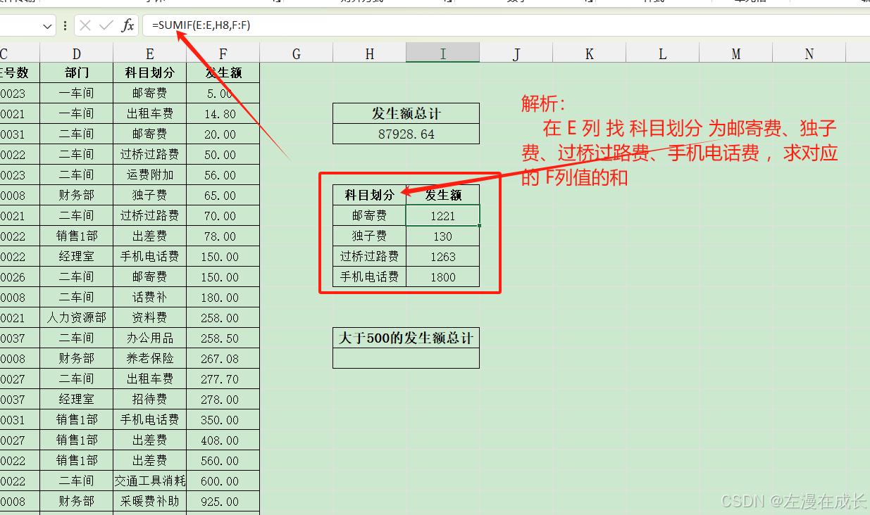 方法二:使用sumifs - sumif 替代vlookup,统计数据