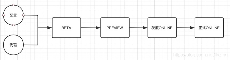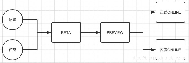 打war包 -> 发布BETA -> BETA测试 -> PREVIEW测试 -> 从PREVIEW环境先同步war包到灰度ONLINE -> 灰度使用没有问题 -> 再从PREVIEW环境同步war包到正式ONLINE
