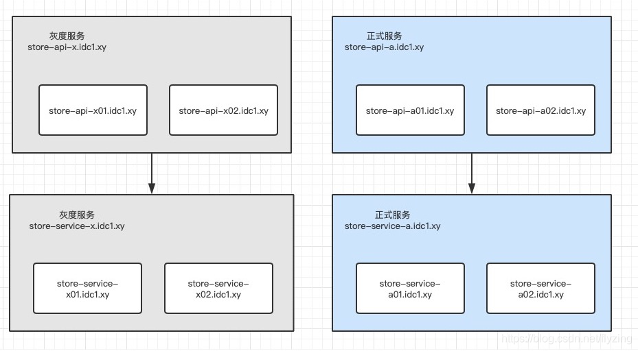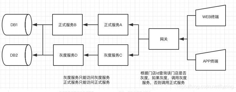 同一时间某个门店使用的新版本服务就是灰度服务,其他门店使用的稳定版本服务就是正式服务。