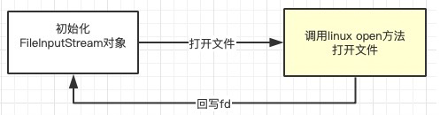 fileOpen(env, this, path, fis_fd, O_RDONLY); //fis_fd对应JAVA对象FileInputStream的成员变量fd,使用只读模式打开文件