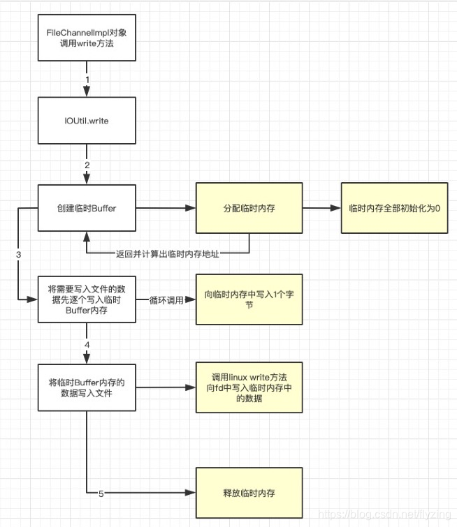(2)使用流或通道写入文件,思路大致也相同,都是先申请一个临时内存空间,再将数据写入到临时内存空间,最后从临时内存空间写入到文件。