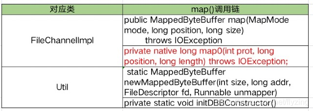 map方法获取到的MappedByteBuffer对象实际是DirectByteBuffer,put和get方法中的native函数已分析过(五-(4)-a,三-3-(4)-c),这里只研究map0函数。