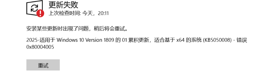 最近(也可能很久了,电脑不怎么关机所以没注意到)系统经常自动更新,然后更新重启后却又提示失败。错误代码如下:
