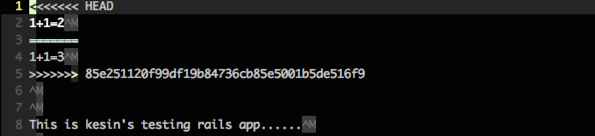 可以看出来,在1+1=几的这行代码上产生了冲突,解决冲突的目标是保留期望存在的代码,这里保留1+1=2,然后保存退出。