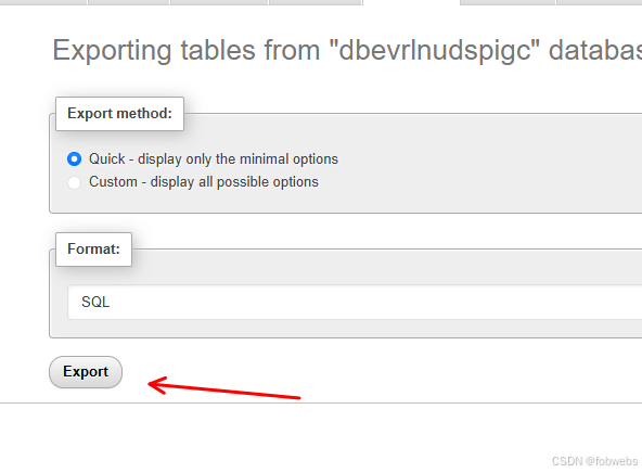 之后直接点Export 即可导出数据库到本地电脑了。