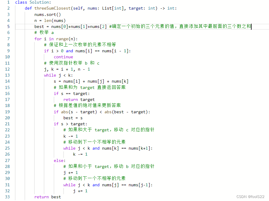 leetcode算法题第16题:最接近的三数之和