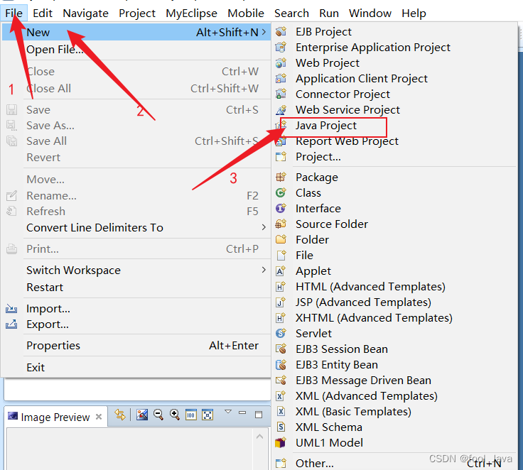 目录 前言 第一部分:MyEclipse新建文件操作 1、先新建项目文件 编辑 2、新建“包文件” 3、键.java文件 第二部分:Java常用快捷键 前言 首先先新建一个文件,然后在跟大家说一下常用快捷键 第一部分:MyEclipse新建文件操作 1、先新建项目文件