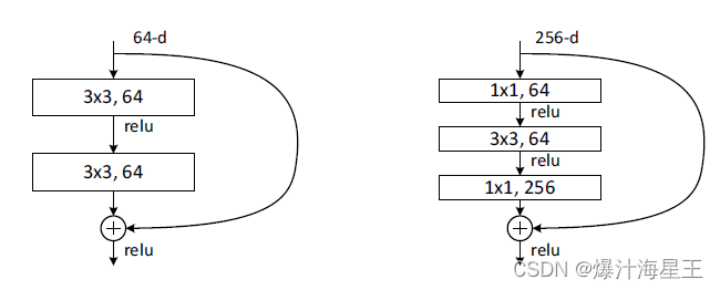 为了解决深层网络的梯度消失和梯度爆炸问题,引入了残差结构到深度学习网络中。将网络之前层的输出跳过中间几层与输出相加,因为特征图尺寸和维度不同,所以残差结构需要将特征图尺寸和维度改至与输出相同后再相加。因为加法不会使梯度叠加,所以很大的缓解了梯度爆炸和梯度消失问题,提升模型性能。