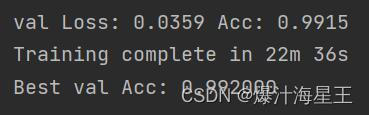 再使用经过预训练的resnet34,训练5轮,训练结果如下。用时对比lenet多了将近一倍,但在验证集上的准确率达到99%,将预测结果上传至平台得到99.45分。