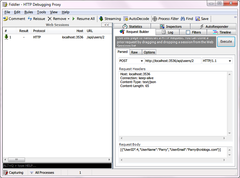 实现一个User添加的功能,接受的类型为User实体,而我们POST的数据为对应的JSON数据,看看dudu在Beta版本的遇到的问题有没有解决。
