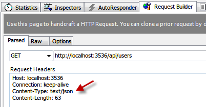 注意在Request Header里面的Content-Type为text/json,POST的json内容为: