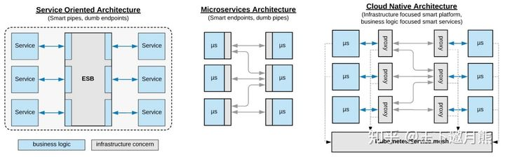 对于微服务,不同背景的人也有不同的见解,对于熟悉 SOA 的开发者,微服务是去中心化的分布式软件架构。SOA 更多强调重用,而微服务偏向于重写。SOA 偏向水平服务,微服务偏向垂直服务;SOA 偏向自上而下的设计,微服务偏向自下而上的设计。