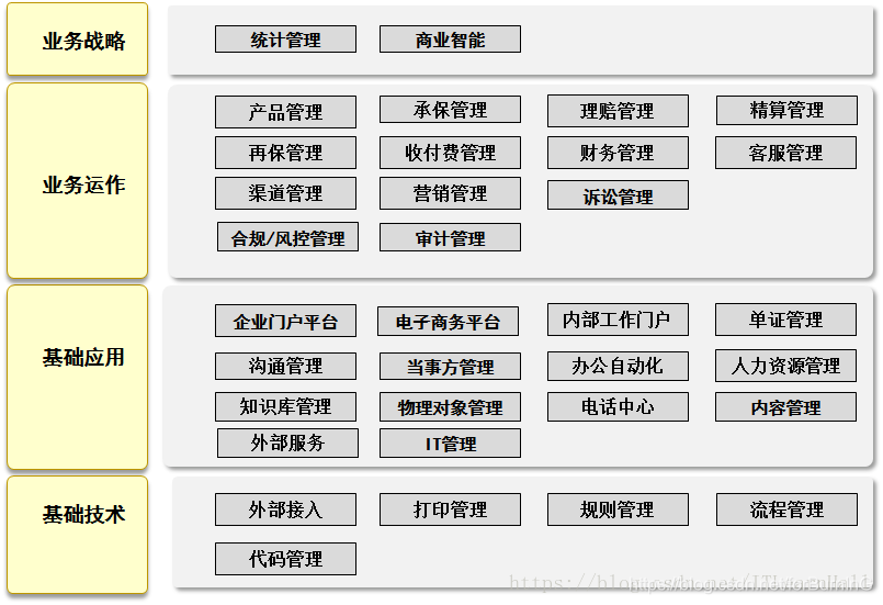 单个系统的应用架构:在开发或设计单一IT系统时,设计系统的主要模块和功能点,系统技术实现是从前端展示到业务处理逻辑,到后台数据是如何架构的。这方面的工作一般属于项目组,而不是企业架构的范畴,不过各个系统的架构设计需要遵循企业总体应用架构原则。